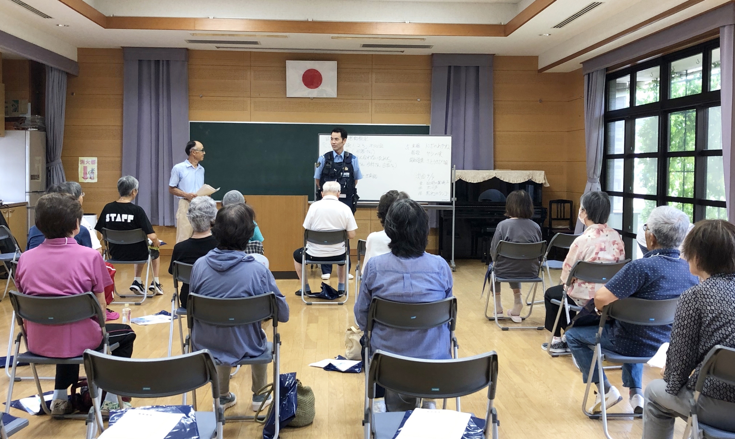 まず野芥交番の方のニセ電話に対する最新情報をお伝えしていただいた後、福西会病院言語聴覚士よりお話をしました。