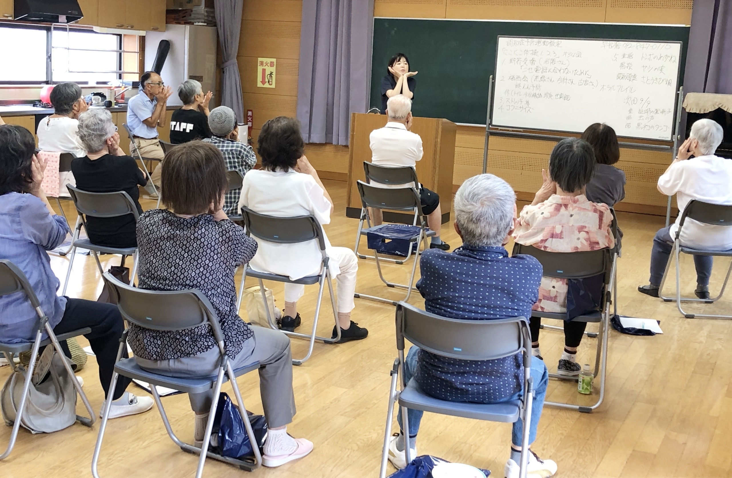 誤嚥のリスクは40才から始まるということで、唾液を出すためのマッサージの方法や早口言葉など皆さん大きな声を出されていました。皆さまの熱気、エネルギーに圧倒されました。