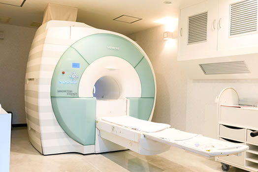 MRI検査はX線検査やCT検査のようにX線を使わず、強力な磁石を埋め込んだトンネルの中に入り、電波を身体に当てることで体内の状態を断面像として撮影することができます。特に脳、脊椎、四肢、骨盤腔(子宮・卵巣、前立腺)の病変に関しては、優れた描出能力を持っています。