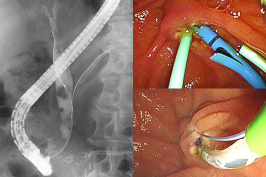 口から飲む内視鏡を使って胆管・膵管を造影する検査をERCPといい、専用の内視鏡装置が必要です。ERCPは、総胆管結石、胆管がん、膵がんなどの診断と治療に有用です。当院では、緊急の治療が必要な急性胆管炎治療に熟達した医師の下で、24時間いつでもERCP下の胆道ドレナージを多数行っています。