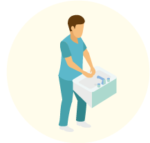 - 手洗いと速乾式アルコールでの手指消毒をお願いします。