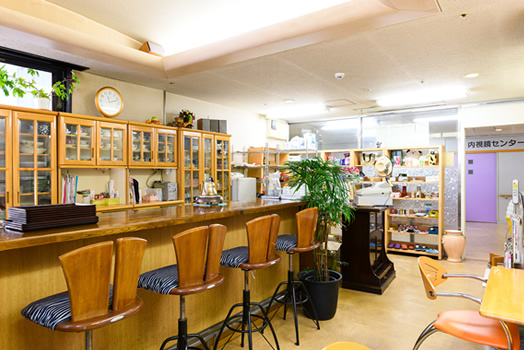 飲食可能な待合室が男女各更衣室に併設されており、院内には喫茶アイリス(正面玄関横)や売店もございますので、透析後の食事は可能です。