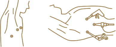 手術は右図のように側胸部3箇所1〜2cmの皮膚切開で行います。
