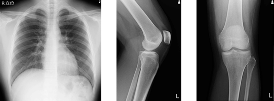 一般撮影とは、俗にいうレントゲン撮影のことです。X線を照射して胸やお腹、全身の骨などの透過像を撮影し、胸部(肺や心臓)の異常影、腹部の腸管ガス・結石など病気のおおまかな状態や骨折などを把握出来ます。当院では2018年12月からほぼ全てFPD(フラット・パネル・ディテクタ)システムで撮影を行い被ばくの低減に努めています。