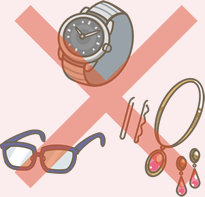 下記のようなものがある場合、撮影部位によって取り外していただくか、脱いでいただくことになります。(検査着を用意していますのでご安心下さい)